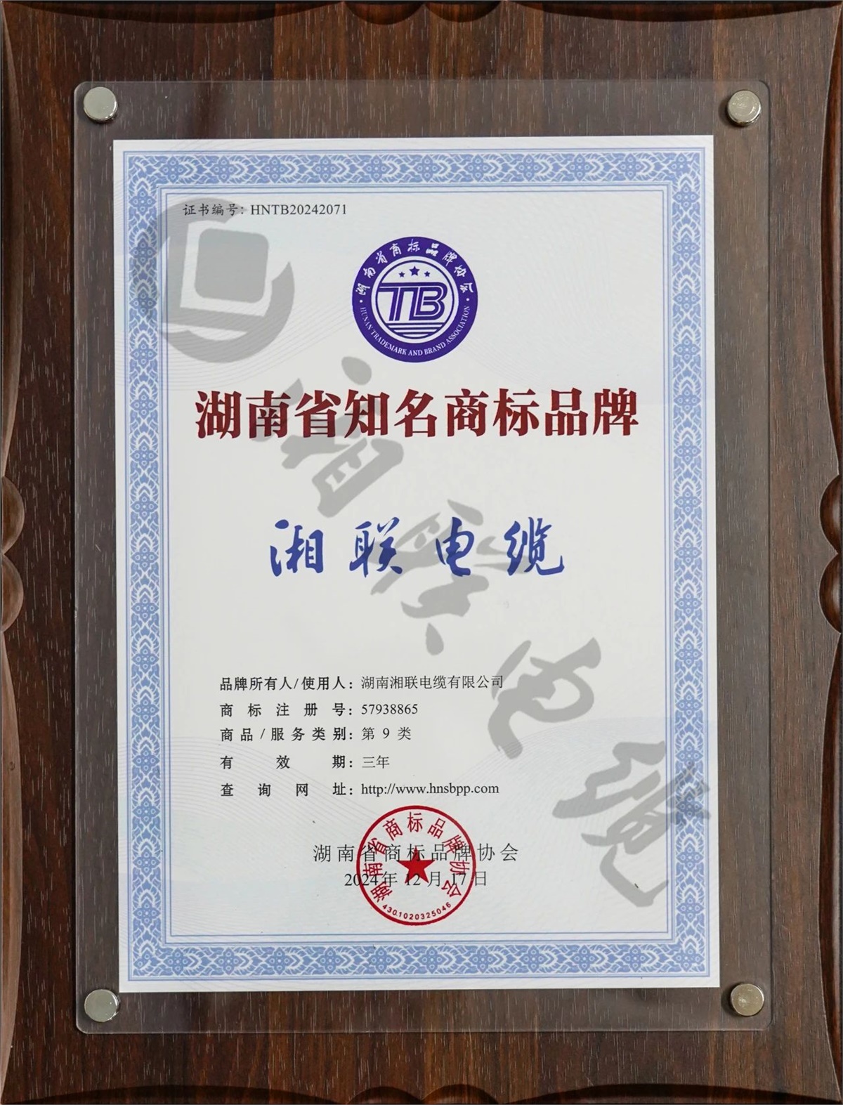 品牌力量 再度出圈 | 湘聯電纜獲評湖南省知名商標品牌!